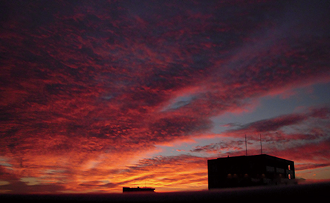 蜂の巣状雲(小山 睦行) きれいな夕日を眺めるのが好きでこの日も普段と変わらない普通の夕日を眺めていましたが、見ている間に空が赤く染まり始め幻想的でした。蜂の巣状雲というものらしく次の機会を待っていますが、以後見れていません。(使用カメラ :NIKON COOLPIX S52c)